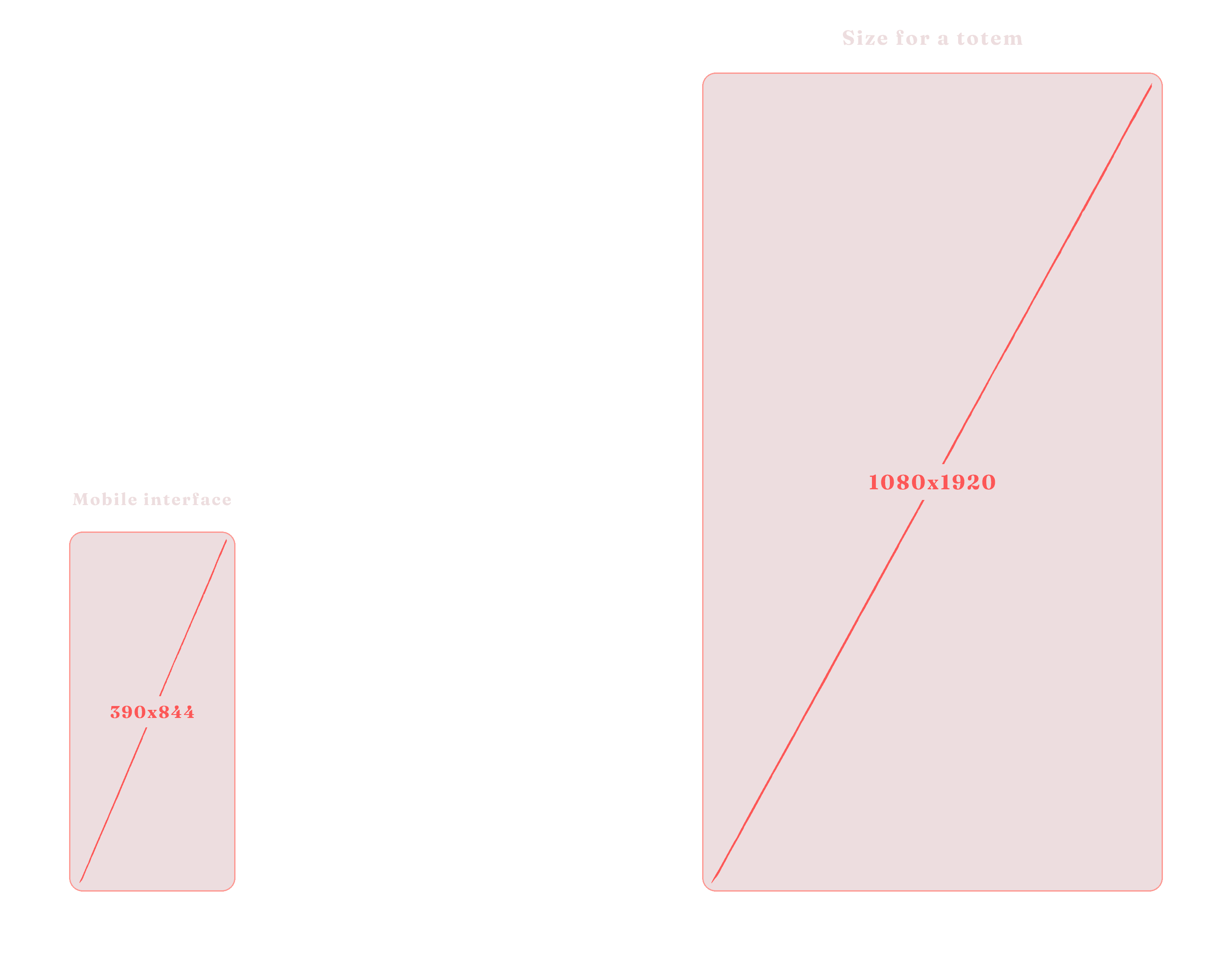 Working with a totem interface also required thinking at a completely different scale. While mobile interfaces typically work within a space of around 390×844 pixels, the totem interface operated in a space nearly three times larger, both in pixel dimensions and physical size. This meant reconsidering element proportions, spacing, and visibility from a standing distance — especially for users who may not interact up close. Working at this scale challenged me to think beyond familiar patterns and brought new depth to my understanding of interface design.